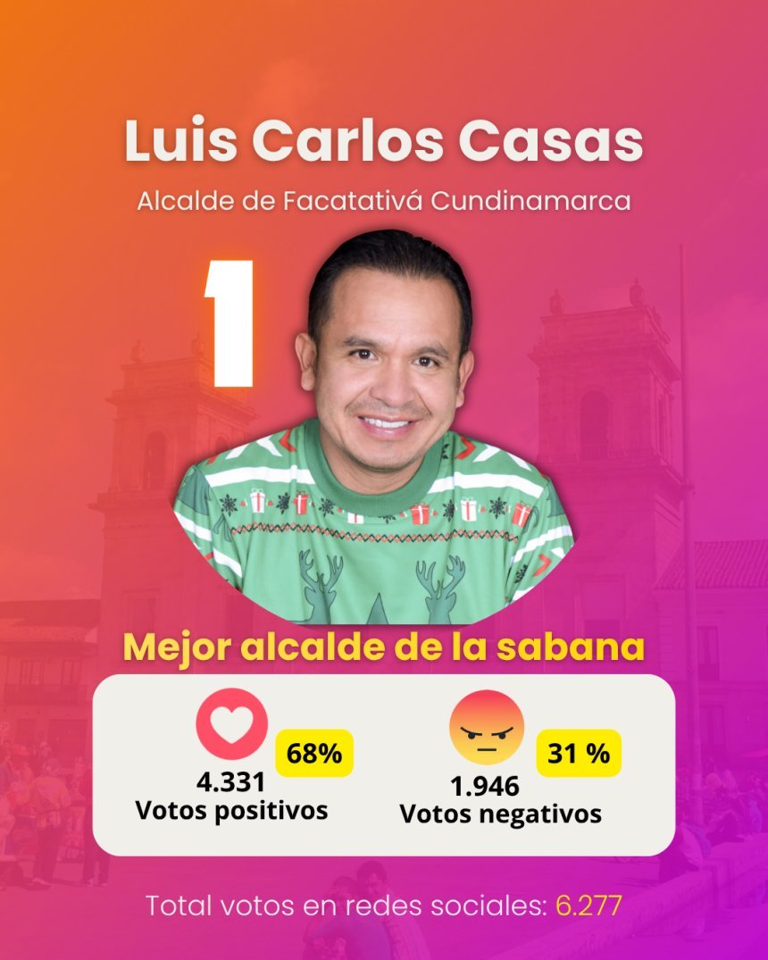 El alcalde de Facatativá, Luis Carlos Casas, se alzó con la victoria, consolidándose como el alcalde con la imagen más fuerte y positiva de la región, con un contundente 68% de aprobación.